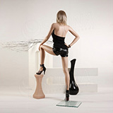 Velmi originální postoj, kvalitní zpracování dámské figuríny se skleněným podstavcem a podstavcem pod nohu, bez paruky ihned zaujme.