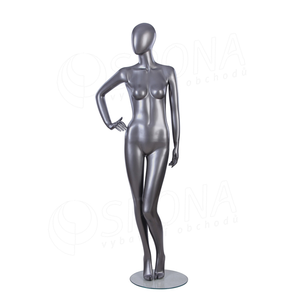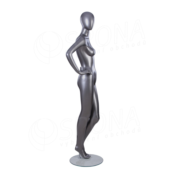 Stojící dámská figurína v abstraktním provedení vyniká svou jedinečnou tmavě stříbrnou barvou, které originalitu dodává také matná povrchová úprava. Všechny tyto atributy tvoří z této figuríny světový módní hit.