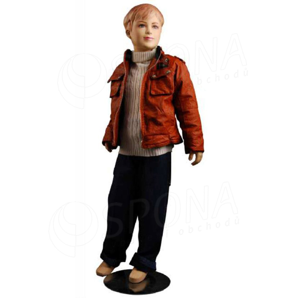 Kvalitní figurína malého chlapce s prolisovanými vlasy, včetně skleněného podstavce.