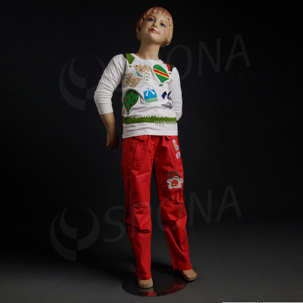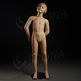 Figurína dívky s jedinečným postojem v tělové barvě, se skleněným podstavcem a prolisovanými vlasy.