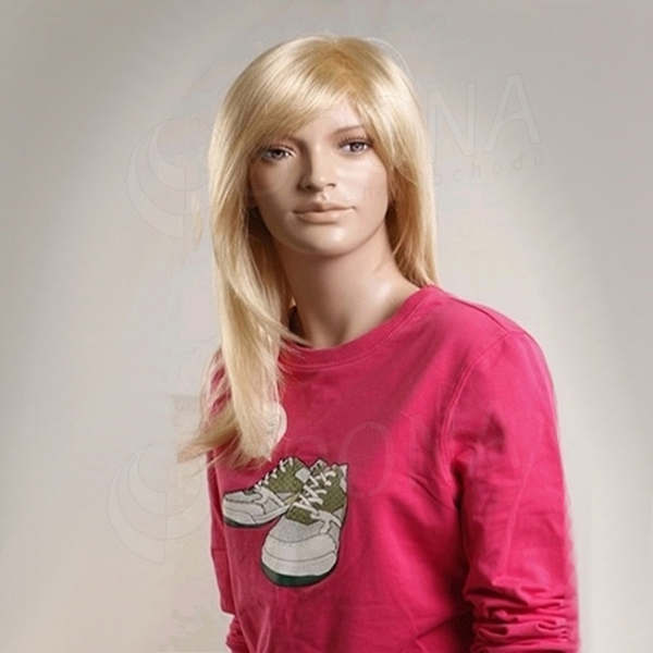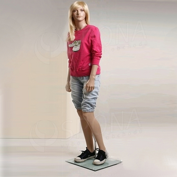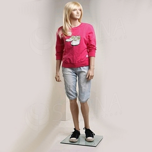 Kvalitní figurína malé dívky v tělové barvě bez paruky, včetně skleněného podstavce.