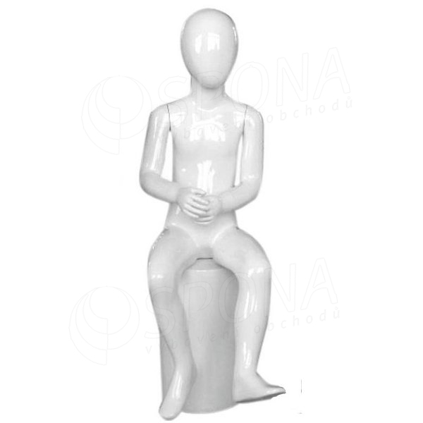 Bílá lesklá figurína v moderním abstraktním provedení, se skleněným podstavcem.